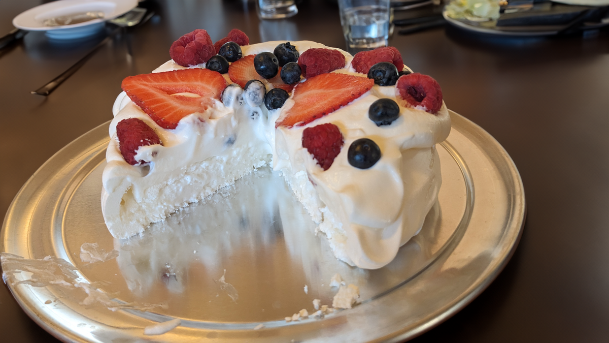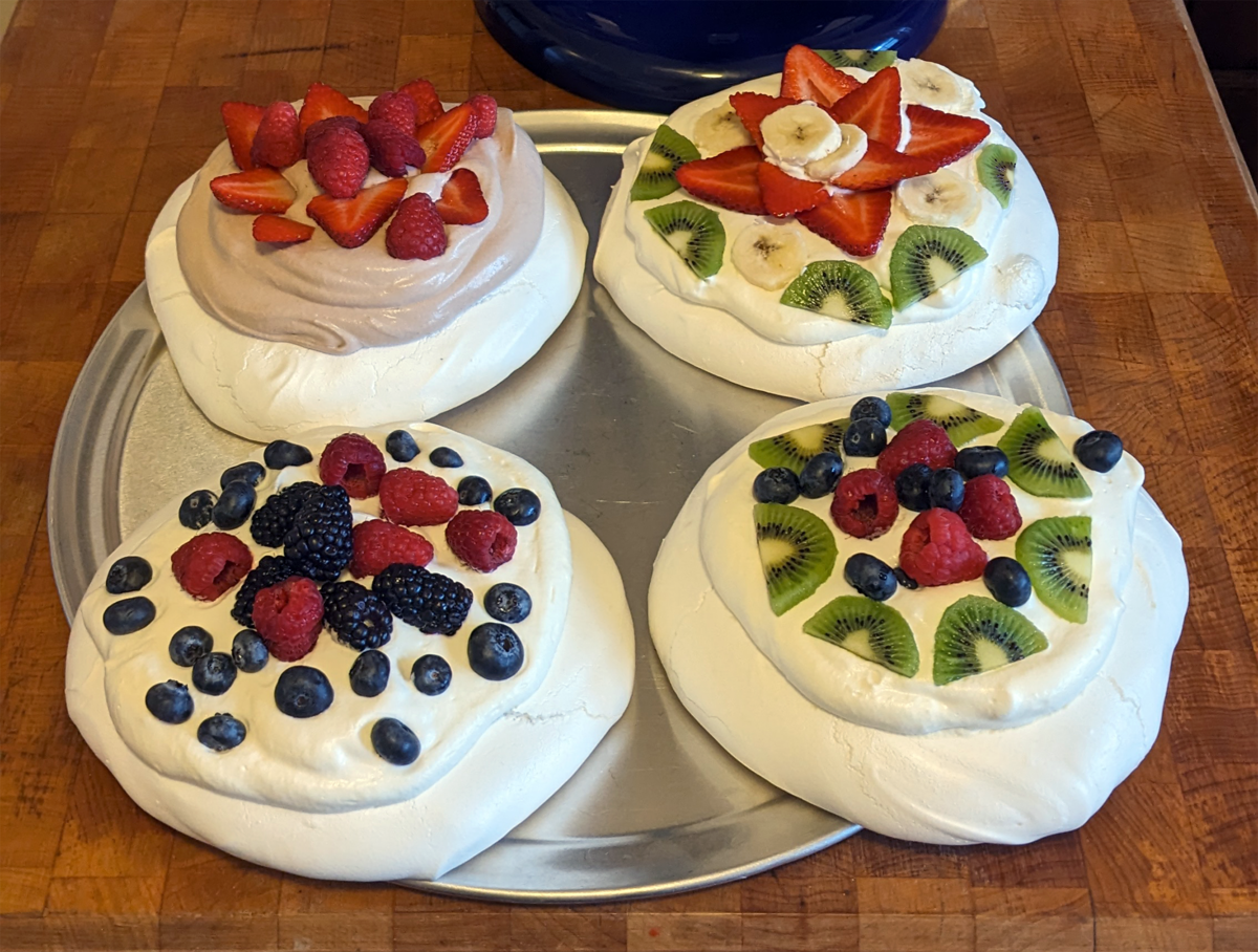 Pavlovas come in three sizes: Personal, Family, and Crikey! (Measuring roughly 5, 10, and 13 inches.)